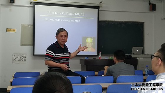 此次系列讲座共分为四个主题,分别为“国外大学本科教学评估与审核机制”、“国外矿山通风除尘技术及装备”、“国外矿山自燃防治研究”以及“基于风险评估与管理技术的安全经济学”。在两天的时间里,Tien结合自身在澳洲莫纳什大学和美国密苏里科技大学的教学经历,介绍了澳洲以及美国大学本科的评估与审核方法并与国内大学进行了对比;对矿山通风除尘以及国外矿山自燃的机理和控制方法进行了介绍,并结合相关领域的最新研究,指出了将来矿山除尘和防治煤炭自燃的研究方向;最后就安全经济学,通过具体的事例展示了其内在的经济学原理和技术应用。