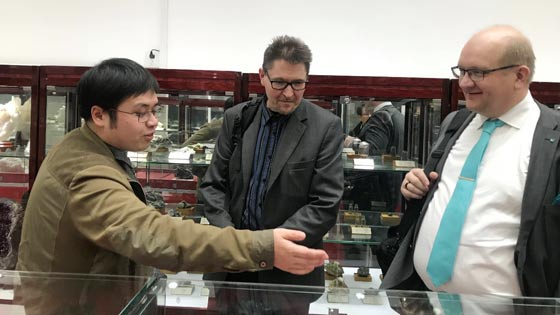 随后,Matti Sarén董事长一行参观了校史馆、学院矿物展示厅和部分矿业工程实验室。