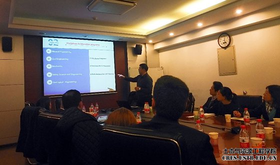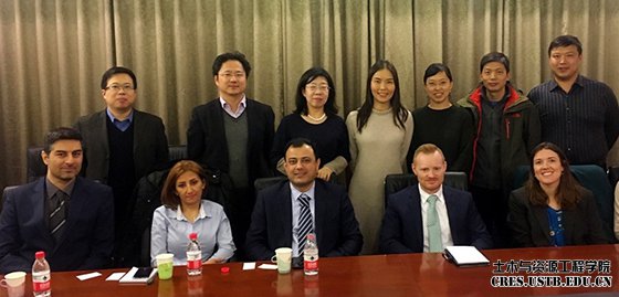 国际合作与交流处李贝副处长、科学研究与发展部邢奕副部长、土木与资源工程学院耿倩男副经理、土木工程系主任苗胜军教授、资源工程系副主任王贻明副教授以及安全工程系、建筑环境与能源工程系等老师参加交流。