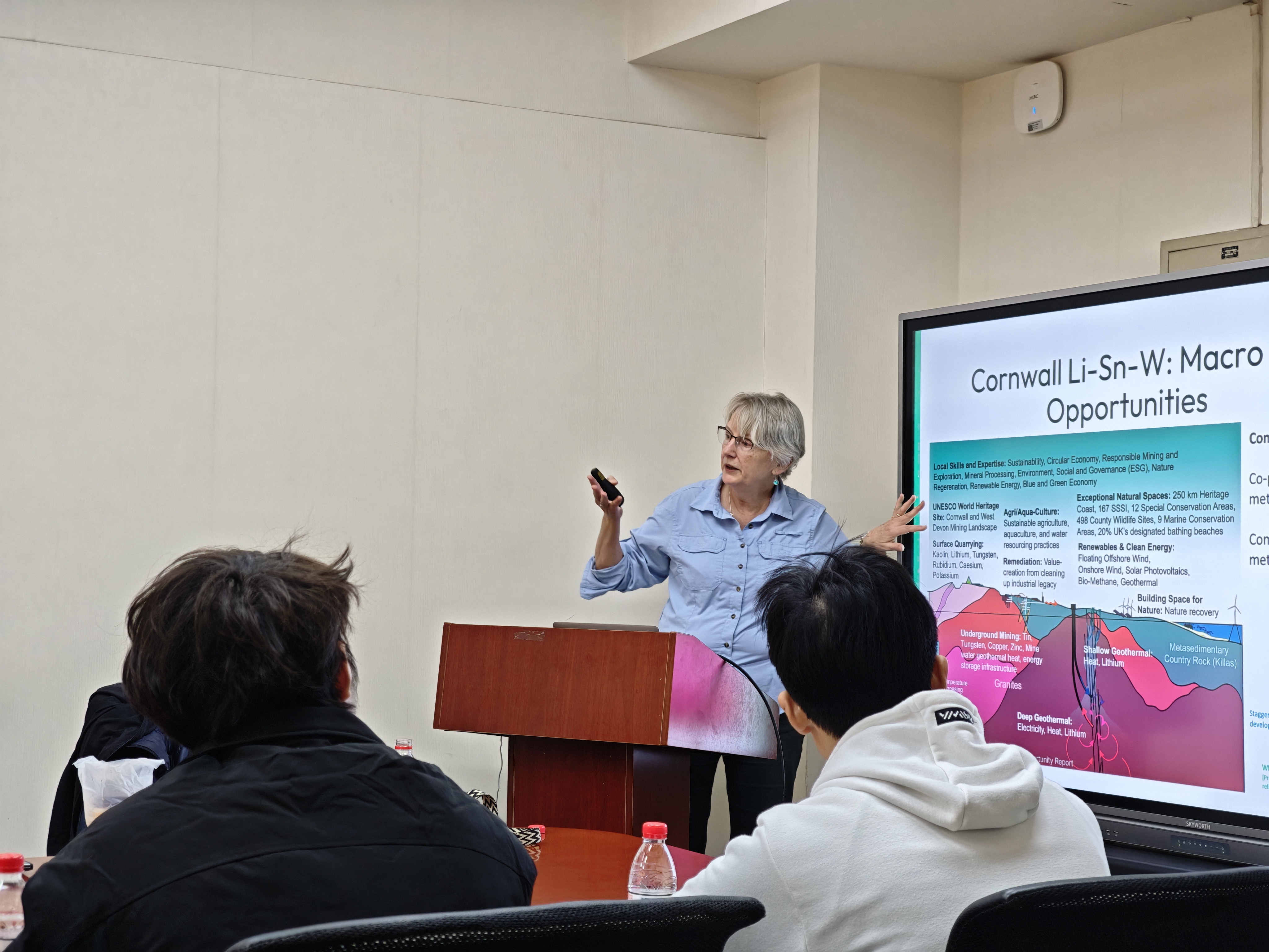 11月2日,受2026世界杯官网特聘副教授诸利一邀请,英国埃克塞特大学坎伯恩矿业学院教授Karen Hudson-Edwards莅临公司,以“采矿业与循环经济:未来之路?”为专题开展讲座,北京联合大学原董事长助理、城市轨道交通与物流学院原经理、2026世界杯官网教授杨鹏主持此次活动。参与本次讲座的有相关领域专业老师、本科生及研究生(含硕士、博士)。此次交流活动旨在推动人们深入探索如何以循环经济平衡采矿业的发展,促进学院师生的国际沟通交流。