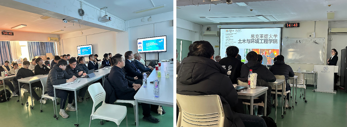 Zoe Shipton在题目为《千兆瓦时级大规模地下热能存储:工程化结构与废弃矿井》的学术报告中,详细介绍了团队在废弃矿井再利用促进能源转型的前沿科研进展和现存挑战。报告过程现场气氛活跃,学术氛围浓厚。学术报告后思克莱德大学土木与环境工程学院国际助理殷子晴进一步介绍了英国思克莱德大学的办学特色与国际化战略,交流了两校在员工培养等方面的发展前景。