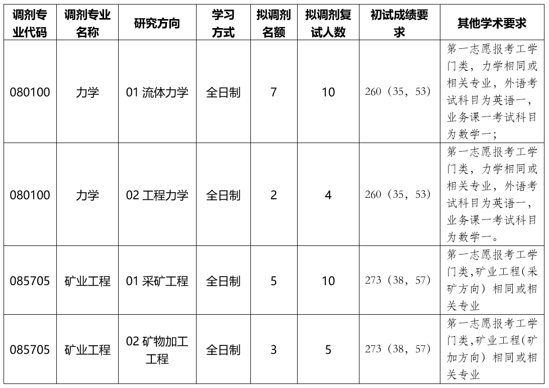 二、接收调剂专业、调剂名额及要求
