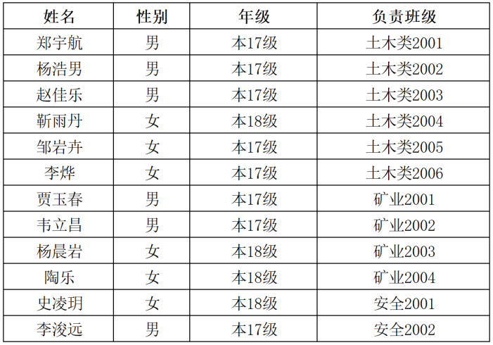 以上人员经过报名材料审核和面试等环节,进入土木与资源工程学院2020级新生小班主任招聘录取名单,经相关培训,计划于2020年9月正式上岗。上岗前,如有任何集体或个人有异议,可以通过口头或书面形式向土木与资源工程学院本2020级年级组反映。