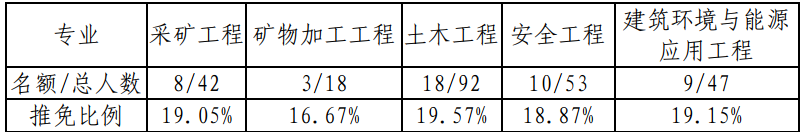 根据《关于做好2021届优秀本科毕业生推免工作的通知》(教通知[2020]122号),公司推免名额共计48人(矿冶学科本硕贯通培养名额由教务处单独核算),按照各专业现有人数252人(不含艺术特长生、民考汉、内地班等),推免名额分配如下: