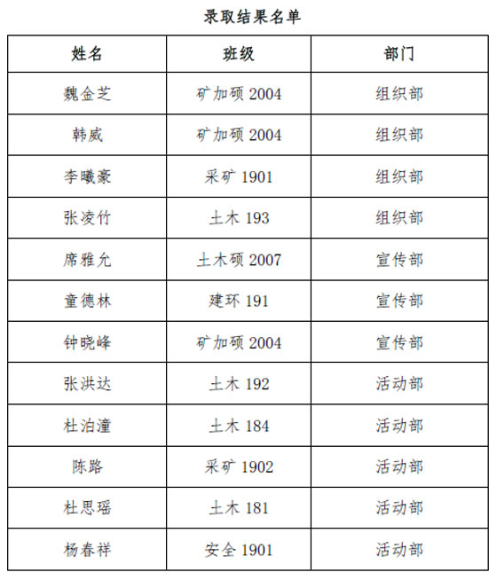 如果对上述名单有疑问或者遗漏,请及时向党建工作中心反映。再次向所有参与和关心此次招新面试的老师及同学表示感谢。