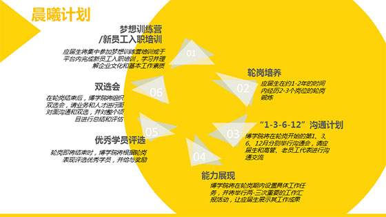 通过校园招聘加入博天环境的职场新人,可以通过为你专项打造的“晨曦计划”,从“校园人”转型为“职场人”,帮助你挖掘潜能,快速“蜕变”。