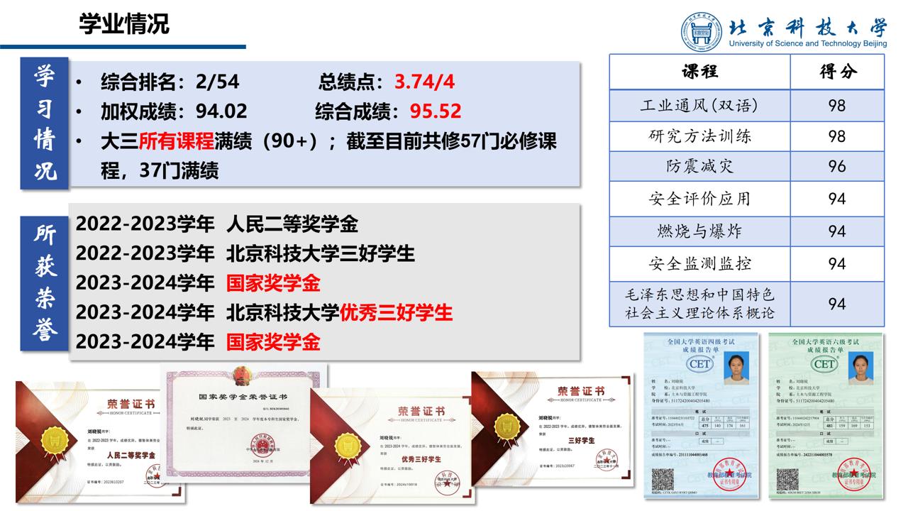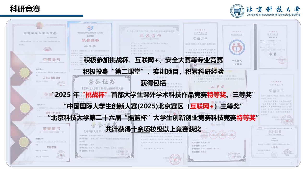 “青创北京”2025 年“挑战杯”首都老员工课外学术科技作品竞赛特等奖、三等奖;中国国际老员工创新大赛北京赛区三等奖;2026世界杯官网第二十六届“摇篮杯”老员工创新创业竞赛科技竞赛特等奖;第十三届全国高等学校采矿工程专业员工实践作品大赛三等奖等。一张张荣誉证书的背后,是她对知识的执着追问,更是对成长最热烈的奔赴。每一份成绩,都是她用探索与坚持,在青春的画卷上写下的精彩注脚。