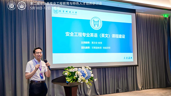 在安全类本科教学改革研究与实践会场上,黄志安教授作为特邀嘉宾作了题为《安全工程专业英语课程建设》的报告,该报告全面探讨了安全工程专业英语课程的建设与优化,强调了提高员工英语水平在安全工程领域的重要性。他分享了课程设计理念、内容设置和教学方法,并强调将英语课程与实践相结合以提升员工综合能力。这为安全类本科教学改革提供了重要经验和参考,为培养优秀安全工程专业人才奠定了坚实基础。