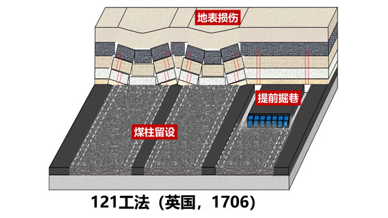 煤炭是我国能源安全的“压舱石”。长期以来,我国煤炭井工生产一直以121工法为主。该工法于1706年起源于英国,存在采掘系统分离、巷道掘进量大、煤柱资源浪费、生态环境损伤等问题。本数字模型演示一种“采留一体化”的开采新方法,该方法由我国何满潮院士于2016年提出,可实现采区内巷道掘进量减少50~80%,资源采出率提高10~15%,减轻地表环境损伤,具有显著经济社会效益。