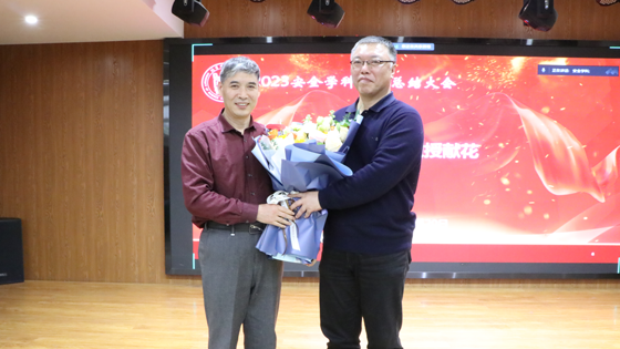 接下来,大安全科学研究院经理杨仁树和安全系主任黄国忠分别向原大安全院常务副经理金龙哲教授和原安全系主任张英华教授送上献花,对他们多年来在领导岗位上对学科的规划发展所起的重要作用表示诚挚的谢意和衷心的祝福。