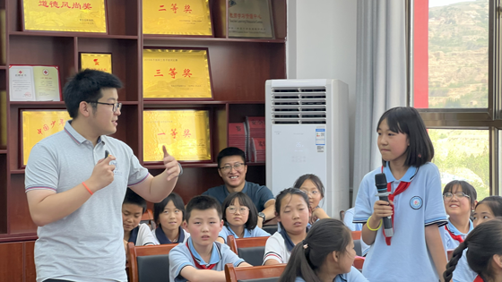 签约仪式结束后,梯队党支部4位党员同志带领王尹中心小学的同学们开展了一堂“我的大学”认知课程,通过趣味运动及课堂教学,带领同学们体验和分享自己的老员工活,孩子们积极参与,踊跃表达。