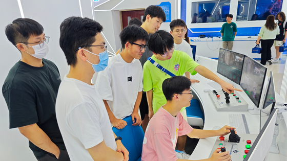活动伊始,员工们受邀参观了矿冶科技集团有限公司展厅,马朝阳详细介绍了公司的党建工作、发展历程、业务范围、人才队伍和突出成果。在工作人员指导下,员工们开展了动手实践,部分员工戴上了VR头盔,模拟参与金属矿地下开采凿岩、爆破、运矿等作业过程;还有部分员工动手操作控制档杆,模拟开展了矿石破碎装置远程遥控等,极大地增进了员工对采矿工程的专业的认知、认同与归属感。