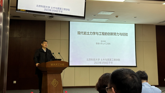 3月8日,应蔡美峰院士和苗胜军经理邀请,国际知名岩土工程专家、香港大学土木工程系岳中琦教授来公司访学,为公司师生作了题为“现代岩土力学与工程的创新努力与经验”的学术报告。苗胜军经理与岳中琦教授进行了会前交流,蔡美峰院士主持了本次报告会,公司教师、研究生、本科生百余人参会,报告内容前沿,价值丰富,气氛活跃,与会者收益颇丰。