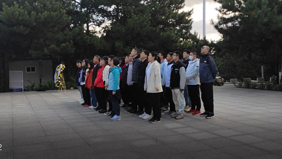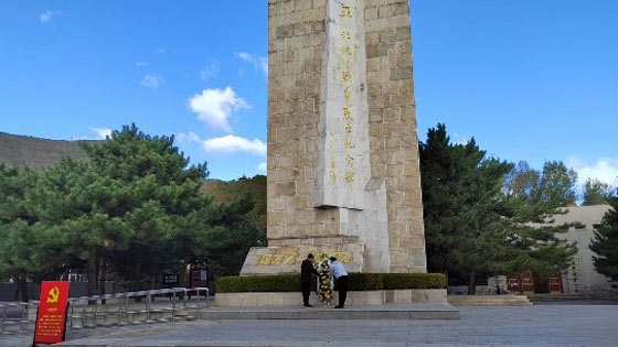 秋日的延庆,晴空万里,平北抗日烈士纪念园内松柏挺拔、肃穆幽静,平北抗日战争烈士纪念碑巍然矗立在广场中央。上午9时10分,敬献花篮仪式正式开始。全场肃立,齐唱《中华人民共和国国歌》。全体师生面向纪念碑,向为中国人民解放事业和新中国建设事业英勇献身的革命英烈默哀。默哀毕,深部金属矿绿色智能开采科研团队负责人宋卫东和曹帅代表深部金属矿绿色智能开采梯队党支部敬献花篮,向革命英烈致以崇高敬意。