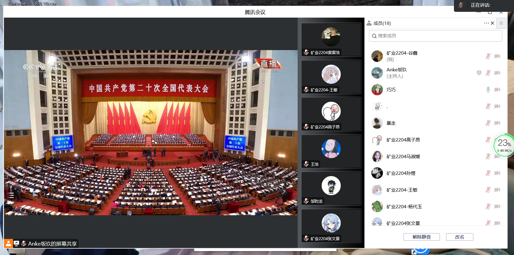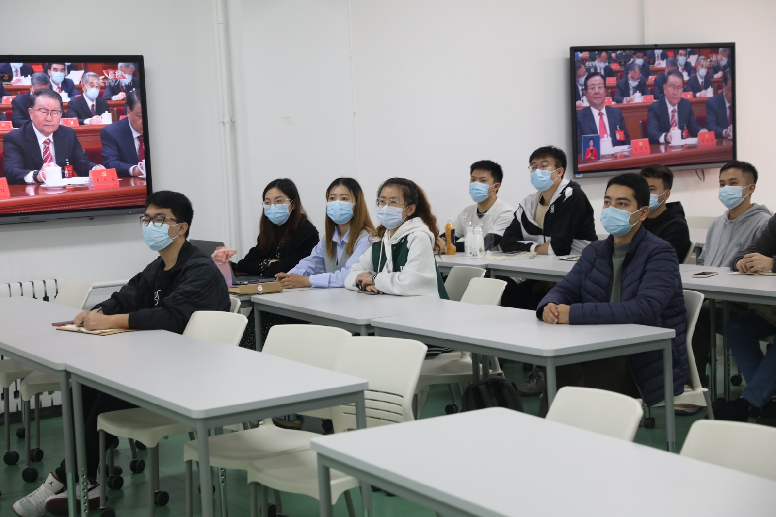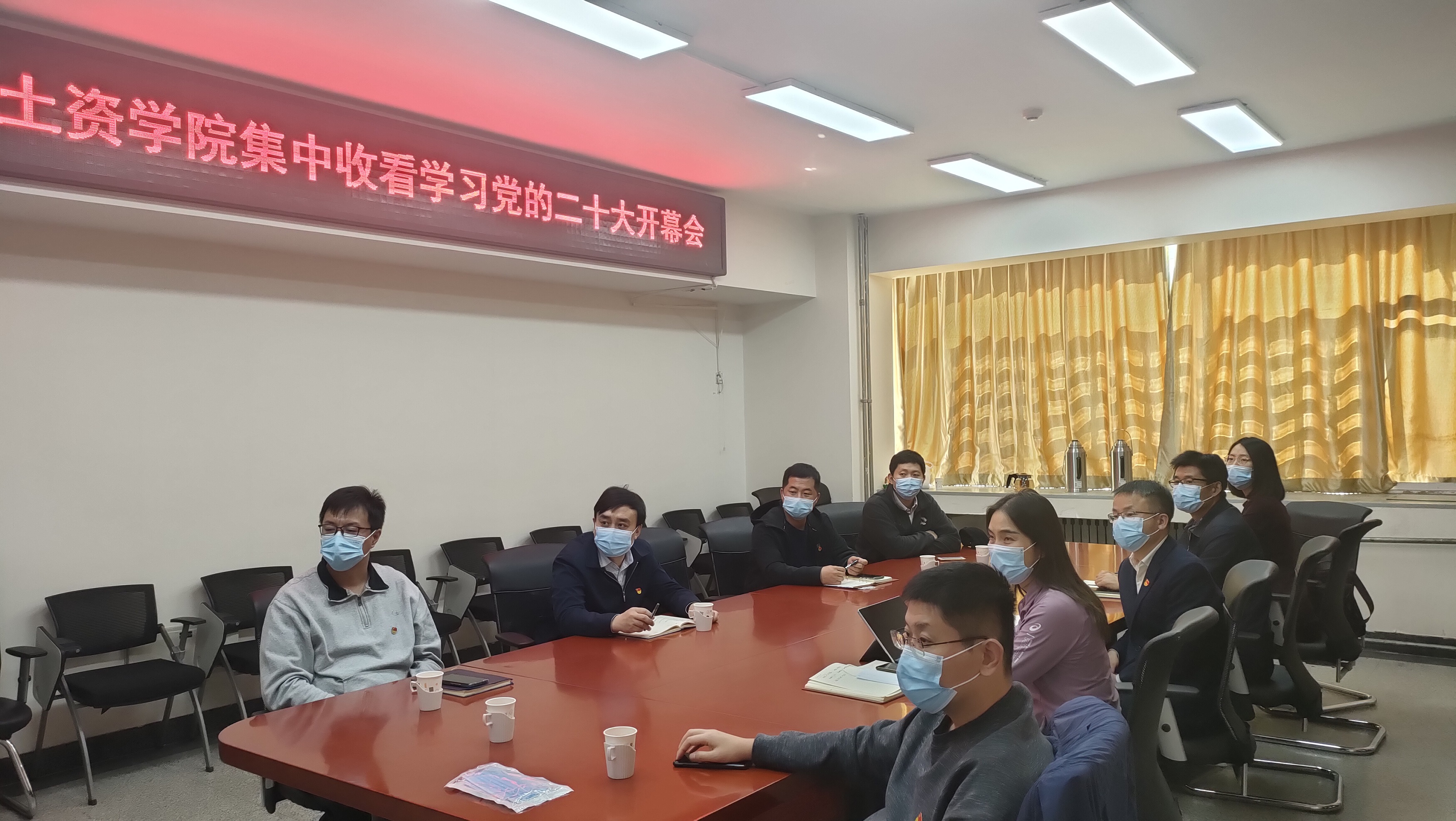 土木与资源工程学院领导班子、学工组、员工骨干以及各年级党员团员线上线下共同观看学习党的二十大开幕会。