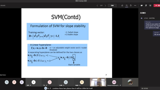 第三场会议由岩土工程智能监测专家,国际动力灾害处置协会员,印度岩体工程协会会员,印度工程师协会会员,印度科学协会会员,同时也是金砖国家合作项目“Radical reduction of the natural geodynamical disasters risk”印度一方项目负责人,印度巴纳特国家理工大学副教授Pijush Samui就“Forecast prediction of slope sliding using AI”话题开展讲座和交流,同时与会的三国成员就AI技术与岩石力学测试技术融合深入了深入交流。