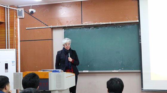 安百拓中国区副总裁Sofie Gielen 在讲话中谈到安百拓与公司之间亲密的关系,她向获得奖学金的同学表示祝贺,表示双方进一步加深“智能采矿创新班”的战略合作,共同培养新一代的智能采矿人才,欢迎各位同学去南京安百拓公司。