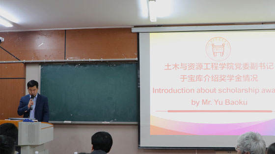 土木与资源工程公司党委副书记于宝库介绍此次“安百拓”采矿奖学金评定的基本情况。