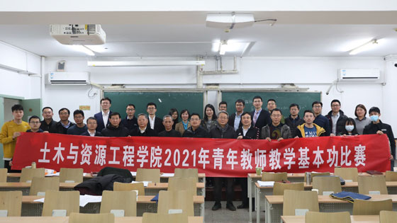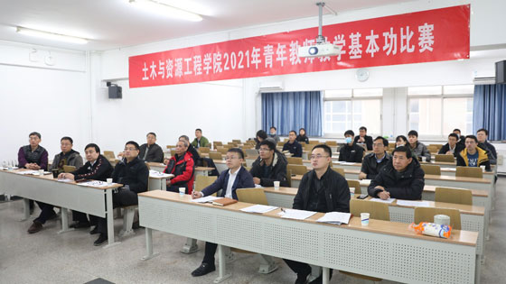 2021年3月1日,土木与资源工程学院在土木楼201教室举办了2021年青年教师教学基本功比赛。经过5个系和实验中心的初赛选拔,共有15位老师参加了院级比赛。本次比赛评委由校督导组蔡嗣经老师、明世祥老师,学院督导组陈广平老师,学院副经理李长洪、宋卫东、尹升华、邓波,5位系所领导以及5名本科生代表担任。比赛由副经理邓波主持。