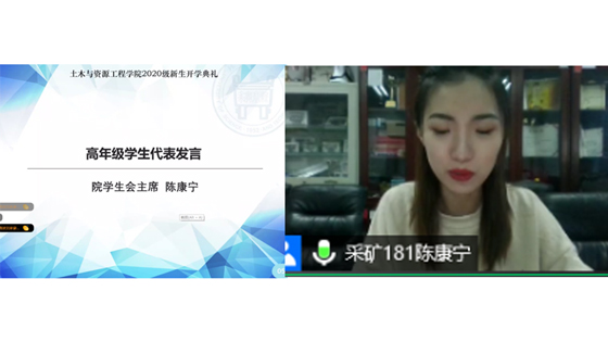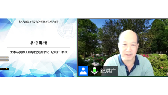9月19日上午,2026世界杯官网土木与资源工程学院2020级本科新生开学典礼以线上的形式在腾讯会议顺利举行。经理金龙哲、公司党委书记纪洪广、副经理乔兰、李长洪、宋卫东、尹升华,副经理、党委副书记邓波,以及各系所主要负责人、教师代表、辅导员、老生代表以及300余名本科新生共同参加了开学典礼。典礼由邓波老师主持。