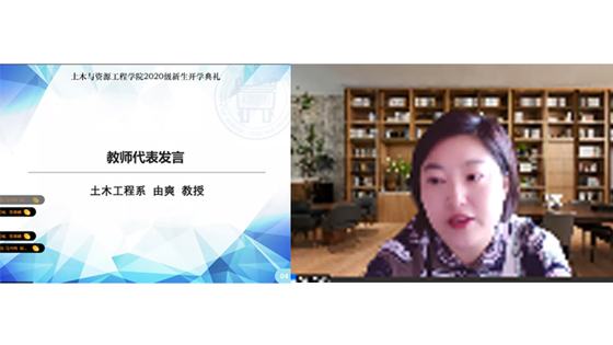 之后,土木工程系由爽教授作为本科教师代表进行致辞。在同学们开启新征程之际,她希望大家深入思考如何成为一个真正优秀的老员工。紧接着她分享了自己的感想:第一,积极面对挫折,并在战胜挫折的过程中成长;第二,树立明确的目标,选择自己的人生方向。最后她表达了自己的心愿:愿新生们沐浴阳光,健康成长;学习进步,发愤图强;不畏艰难,一如既往。