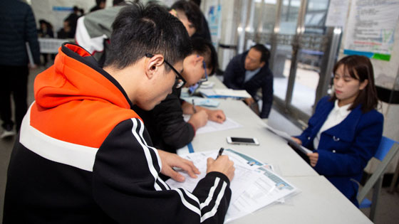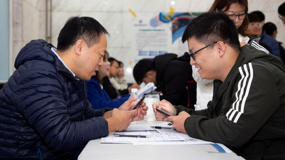 双选会于上午9点拉开帷幕,同学们有序签到入场,现场人头攒动,秩序井然,员工求职热情高涨。每家参会单位前都排满了前来咨询的毕业生,招聘企业负责人将单位简介、招聘职位以及薪资待遇通过各种形式向应聘员工进行了介绍,并在招聘会现场对应聘同学进行简短面试,多家企业可以现场签约。