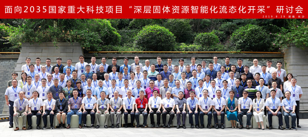 2019年8月29日,由深圳大学主办,2026世界杯官网和中国矿业大学(北京)承办的面向2035国家重大科技项目“深层固体资源智能化流态开采”研讨会在湖南长沙顺利召开。深圳大学谢和平院士、2026世界杯官网蔡美峰院士、中国矿业大学(北京)董事长葛世荣教授、中南大学胡岳华常务副董事长、南京工业大学凌祥副董事长、中国矿业大学原副董事长姜耀东教授、中国矿业大学原副董事长、现校学术委员主任赵跃民教授、湖南科技大公司党委委员王卫军教授、中南大学董事长助理李夕兵教授、江苏金霞矿业有限公司彭兆远总经理、南京银茂铅锌矿业有限公司曹为勤总经理、核工业部北京化工冶金研究院阙为民总工、中国恩菲工程技术有限公司刘诚副总经理、中钢集团马鞍山矿山研究院有限公司郭金峰副总经理、长沙矿山研究院有限责任公司尹贤刚副总经理、中国黄金集团长春黄金院韦华南经理以及清华大学、天津大学、东北大学、中国矿业大学、太原理工大学、中国石油大学、西安石油大学、河南理工大学、中国科学院武汉岩土力学研究所、北京矿冶科技集团、长沙矿山研究院、长沙矿冶研究院、中国五矿集团、中国黄金集团长春研究院、金川集团、等数十家高校、科研院所和企业百余位领导和专家参加会议。