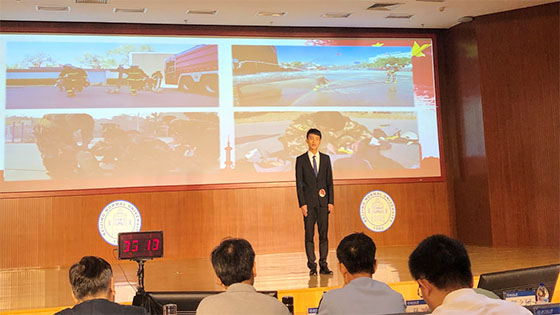 公司赵佳乐同学精神饱满、意气风发,讲述了曾服役于消防部队的感人故事,回忆曾作为消防战士时,那段“与时间赛跑”的热血青春,诠释了当代老员工热爱国防、投身国防、建设国防的情怀与担当。他的演讲立意高远,声情并茂,观众沉浸其中、共情共鸣。