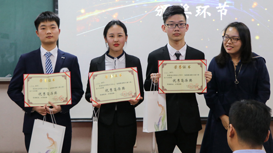 最后,张雪迎同学表现突出获得一等奖,并成功晋级学校模拟求职决赛。王奕文同学获得二等奖,许苏程同学获得三等奖。张雪迎、许苏程、闫增鑫同学获得优秀简历奖。王奕文、张雪迎、王世豪、许苏程四位同学获得面试直通offer。