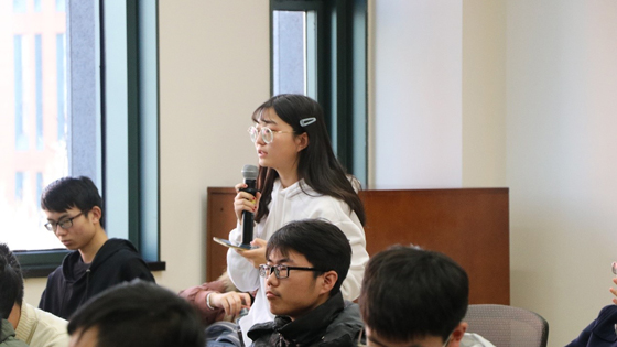 参观结束后,在国家能源集团曹志国博士的主持下,“煤炭开采水资源保护与利用”国家重点实验室的3位专家为全体师生做了报告,其中张勇博士介绍了西部煤炭开采水资源保护技术、郭强博士介绍了矿井水处理与利用、郭俊廷博士介绍了神东矿区生态保护研究与实践。报告结束后,同学们就报告中感兴趣的内容进行了踊跃的提问,几位专家为同学们一一解答,现场交流氛围热烈。