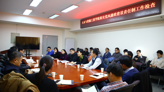 12月13日下午,土木与资源工程学院贯彻执行党风廉政建设责任制重点检查汇报会在土木楼214会议室召开。公司党委副书记、纪委书记戴井岗,纪委监察室副主任杜伟,巡察办副主任牛珩,党办副主任赵萌,党委宣传部副部长邢华超,党委组织部王英辉出席本次会议,会议由杜伟主持。出席会议的还有纪委监察室邓春秋、黄东旭,学院领导班子成员,公司党委委员、教职工党支部书记、系所主任、教授和教代会代表等。