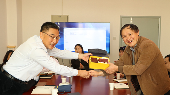 经理金龙哲教授深情回顾了两位老师为学院和学科发展所做的贡献,对他们敬业爱岗、严谨勤奋、对学问孜孜以求的工作与治学态度表示钦佩,希望退休后继续关注和支持学院的建设发展,继续关心青年教师的成长,并祝福他们身体健康、家庭幸福。同时代表学院为两位老师赠送纪念品。