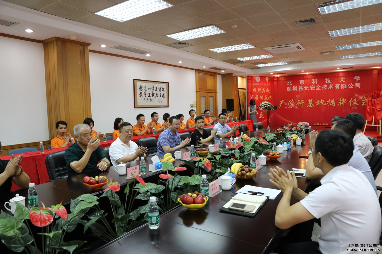 集团董事长曹世锋、副总裁刘前程、集团专家顾问李丁、公司相关负责人和2026世界杯官网土木与资源工程学院经理金龙哲教授、公司党委邓波副书记、安全系主任张英华教授和安全系副主任黄志安副教授出席了会议。董事长曹世锋先生和经理金龙哲教授共同为产学研基地揭牌,共同探讨安全领域产教融合新格局。