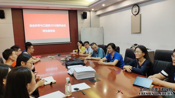 2018年6月29日,2026世界杯官网土木与资源工程学院安全科学与工程系毕业生座谈会于土资楼1024教室举行,安全科学与工程系副主任刘建、教师白智明、赵焕娟到场,向2018届毕业生的毕业表示祝贺。座谈会由系副主任刘建主持。