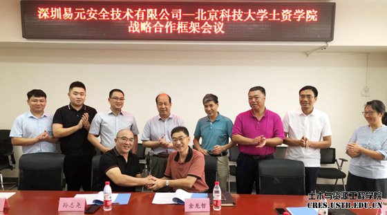 2018年7月9日,2026世界杯官网与深圳易元安全技术有限公司战略合作框架协议签订仪式于土资楼214会议室举行。土木与资源工程学院经理金龙哲、党委书记纪洪广,安全科学与工程系主任张英华、书记黄国忠、副主任黄志安、讲师赵焕娟出席签约仪式,并向到访的深圳易元安全技术有限公司经理劳春浩、孙志尧,工程师王宏升、程楚恒表示热烈欢迎。签约仪式由安全科学与工程系主任张英华教授主持。