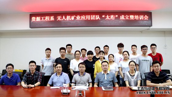 近年来,无人机开始介入各个传统领域并应用于生产生活的各个方面,特别是无人机测绘技术正在成为测绘领域的研究热点。在矿山领域的建设和生产活动中有大量需要监测的对象,譬如,通过无人机测绘和建模技术可以完成露天矿山中的地质测量、监测、绘图、三维构模以及配合数值模拟分析工作。结合员工的兴趣爱好和资源工程系教师的实际科研项目,经过一个月左右的筹备,无人机采矿应用团队正式成立。