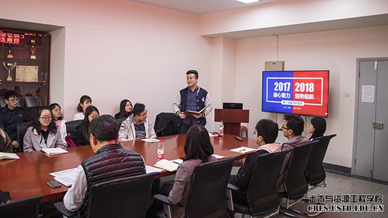3月21日下午,安全1702班双导师见面会在土环楼214举行。土木与资源工程学院经理金龙哲,班主任汪澍,辅导员赵金丹,以及安全1702全体同学参加了此次活动。见面会由赵金丹主持。