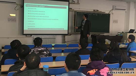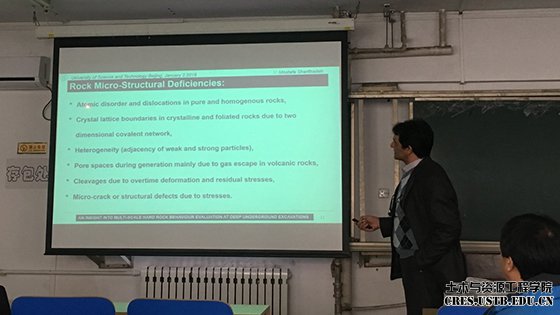 Mostafa Sharifzadeh教授结合自己近年的研究及国际岩石力学、金属矿开采等方面的最新研究进展,对以下内容做了详细报告:(1)地下岩石开采和巷道施工的设计和规划;(2)岩石力学试验方法与不同尺度下岩体特性分析;(3)岩土监测以及观察法反分析;(4)岩体质量评价体系;(5)地下开采中的加固、支护和控制;(6)岩爆倾向性评价指标。