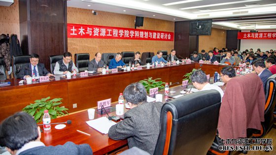 2018年1月13日,土木与资源工程学院在天工大厦隆重组织召开了以“明确目标,寻找差距,凝练特色,创建一流”为主题的学科规划与建设研讨会。公司党委书记武贵龙、董事长张欣欣、公司党委副书记、纪委书记戴井岗、副董事长吴爱祥出席会议,学院领导班子成员、全体教授以及各兄弟学院的领导代表参加会议。与会领导和教授围绕学院的学科发展规划和双一流建设进行了一天的交流与研讨。会议由公司党委书记纪洪广主持。