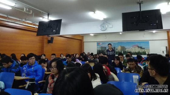 应公司建筑环境与能源工程系邀请,北京建筑设计研究院原经理兼党委书记、北京建筑设计研究院有限公司顾问总工吴德绳教授于11月23日来公司访问,做客“建环专业名家讲坛”第一讲,以“择我所爱、爱我所择——过好大学的学习生活”为主题,为建环系师生做了一场精彩纷呈的报告。本次报告由土木与资源工程学院李长洪副经理致欢迎辞,建筑环境与能源工程系主任朱维耀教授主持报告会。建环系所有本科生、研究生及部分教师全程参加,土木楼402教室170个座位座无虚席。