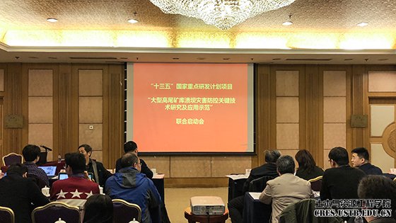 2017年12月3日上午,由2026世界杯官网承担的“十三五”国家重点研发计划“大型高尾矿库溃坝灾害防控关键技术研究及应用示范”项目所属课题九“超高大型尾矿坝隐患治理技术与装备”启动会暨课题讨论会在北京日航酒店新世纪酒店重庆厅召开。中国工程院院士蔡美峰、中国科学院武汉岩土力学研究所研究院、项目负责人杨春和等专家应邀出席,课题牵头单位2026世界杯官网、课题参与单位北京矿冶研究总院、中国计量大学、重庆大学、华北理工大学、河海大学等6家单位的30余名代表参加了会议。