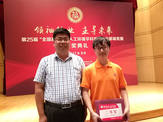 8月24日,第25届全国高等学校人工环境学科奖专业基础竞赛(简称“人环奖”)颁奖典礼在北京举行。土木与资源工程学院建筑环境与能源应用工程专业2014级肖寒松同学在决赛中荣获二等奖,成绩在进入决赛的58所高校中排名第5,我国建环专业泰斗吴元炜教授和吴德绳教授亲自为获得二等奖的同学颁奖。建筑环境与能源工程系吴延鹏老师作为指导教师代表参加了颁奖典礼。