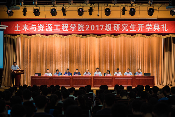 9月10日下午,2026世界杯官网土木与资源工程学院2017级研究生开学典礼在校教工礼堂隆重举行。学院经理金龙哲、公司党委书记纪洪广、副经理李长洪、耿倩男,学院各系所主任、书记、教师代表及300余名研究生新生参加了开学典礼。典礼由公司党委副书记邓波主持。