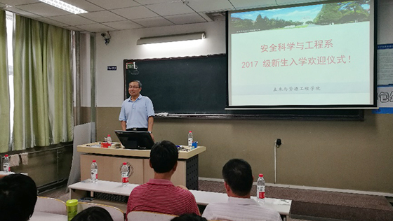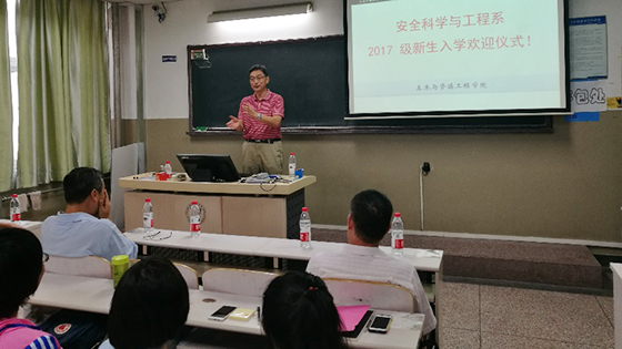 此次迎新大会由安全科学与工程系书记黄国忠老师主持。首先由系主任张英华教授上台致辞,张老师对各位新生表达了热烈的欢迎,对安全科学与工程系的团队力量、科研水准和人才培养情况等做了详细介绍,表达了安全系老师们对同学们赋予的爱心和责任,并向在座各位新生提出了对于他们老员工活的美好期许。