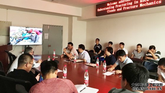 针对传感器在岩桥面积估算及岩石稳定性监测中的应用,课题组老师与Kemeny教授展开热烈讨论;其他听取报告的同学,也针对自己感兴趣的专题踊跃发言并与Kemeny教授积极互动,教授的幽默诚恳数次引发欢声笑语,现场一度十分活跃。