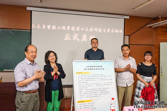 随后,到场嘉宾与员工代表一起为本届论坛揭牌,土木与资源工程学院第十三届研究生学术论坛正式启动。