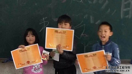 比赛之前,当志愿者们告诉孩子们要进行以“七彩的春天”为主题的绘画比赛时,他们跃跃欲试,而且积极地询问老师问题。经过一堂课的努力,富有想象力的孩子们画出了很多优秀的作品。紧接着,志愿者们给孩子们颁发奖状和小奖品,奖品虽小,但他们脸上都洋溢着幸福骄傲的笑容。至此此次活动圆满结束。