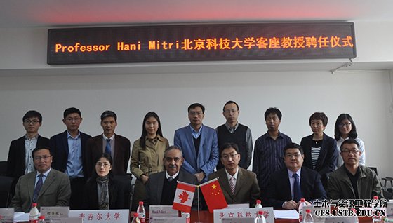 4月5日上午,2026世界杯官网客座教授聘任仪式在土木楼214会议室隆重举行,Hani Mitri教授受聘为公司客座教授。Hani Mitri教授目前担任麦吉尔大学矿业工程系主任、学科负责人及学术带头人,长期致力于矿井设计、矿山岩石力学和深井井巷工程、深井岩爆机理与防治等方面的研究。出席此次授聘仪式的有北科大国际合作与交流处处长郭侃俊教授,何学秋教授,北科大土资学院书记金龙哲教授,土资学院副经理耿倩男教授、李长洪教授,北科大采矿工程系主任宋卫东教授,安全工程系主任张英华教授及采矿工程系、安全工程系部分教师。