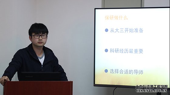 最后上场的是张清杰同学,从何为研究生、保研流程、保研做什么三个方面分享了他的保研经历,他用清晰直观的图解风趣幽默的语言展示了“研究生”的含义;对于保研流程更是干货满满,他建议大二的同学尽早准备保研相关事项,希望即将同学们在自己的保研之路上取得圆满成功。