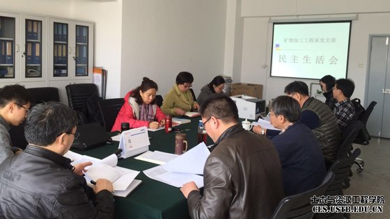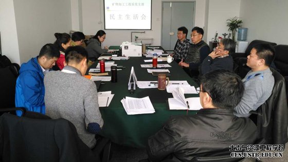 支部书记李正要首先介绍了公司党委对党支部召开“两学一做”专题民主生活会的要求,接着代表党支部总结了支部在矿物加工工程专业教育认证、矿业工程学科评估、组织党员教师开展“两学一做” 学习教育等方面的工作,剖析了支部工作中的不足之处,提出了支部今后的主要工作内容。支部每名党员以“四讲四有”为标尺,对照学校教师党员行为规范,结合2016年度工作和生活情况,依次进行批评与自我批评,反思了自身工作、学习、思想等方面存在的不足。党员同志积极发言,自我批评态度端正;与此同时,支部党员还相互批评、相互指正,对其他同志的优点给予肯定,缺点予以明确的指正说明;还结合实际,讨论了矿物加工工程学科发展、青年教师如何培养及如何提高教师幸福感等。会议气氛轻松、和谐,充分体现了党内民主,增强了党内同志间的交流。